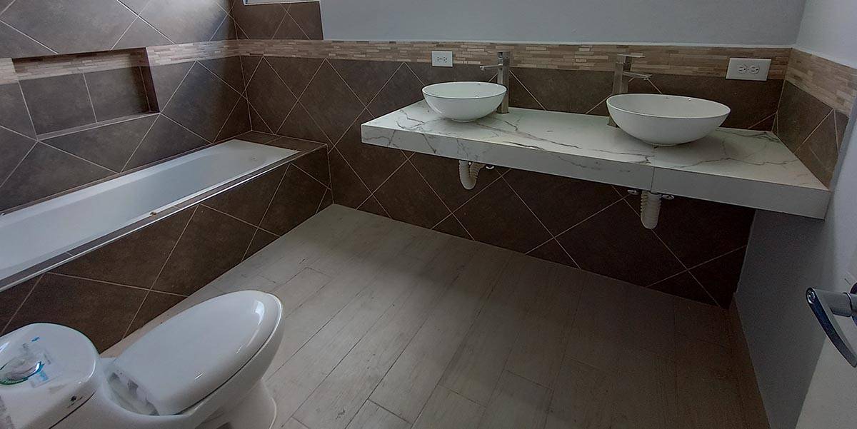 Desde el primer momento que entres al baño, notarás la belleza y durabilidad de los enchapes de cerámica o porcelanato en paredes y pisos. Con una loza sanitaria de la reconocida marca American Standard, tendrá un baño de calidad superior y elegancia incomparable.