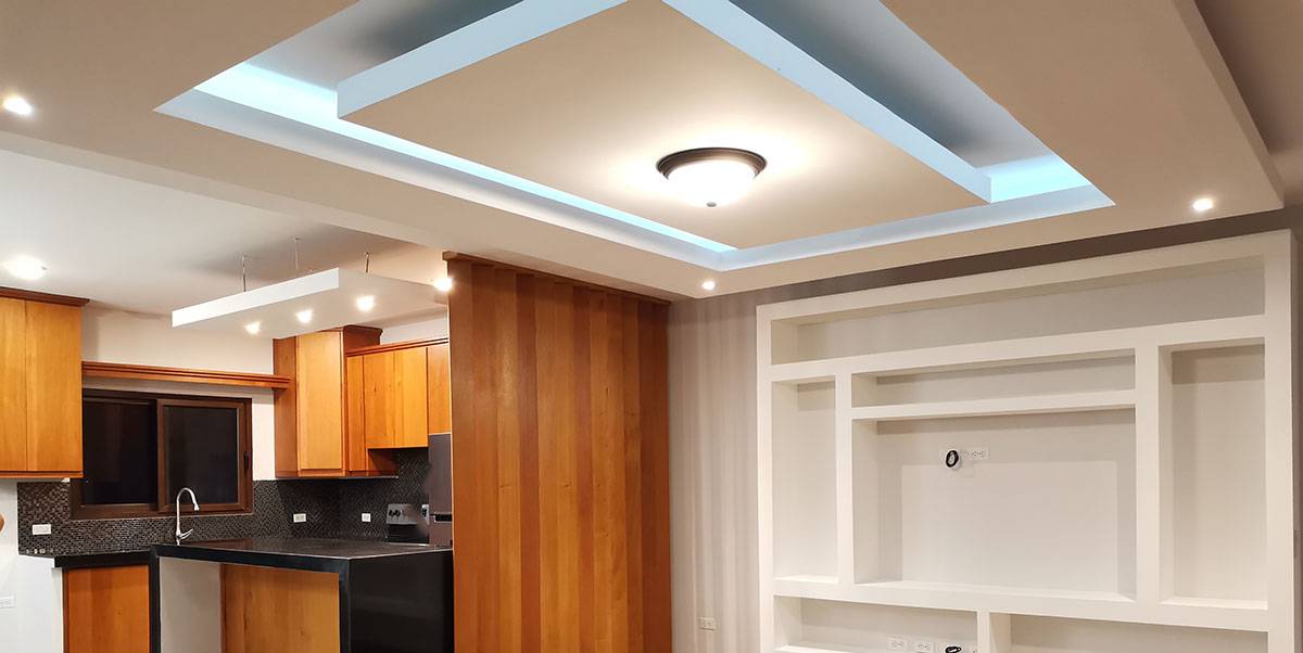 El Cielo falso también ha sido diseñado para ofrecer una apariencia elegante y práctica. Hacemos uso de un cielo falso de Tabla Yeso o PVC según tu elección, lo que significa que no tendrá que preocuparse por el mantenimiento regular del cielo. Además, las luces tipo spot LED empotradas son una mejora que no solo brindan una iluminación eficiente, sino que también complementan el diseño moderno de su hogar.